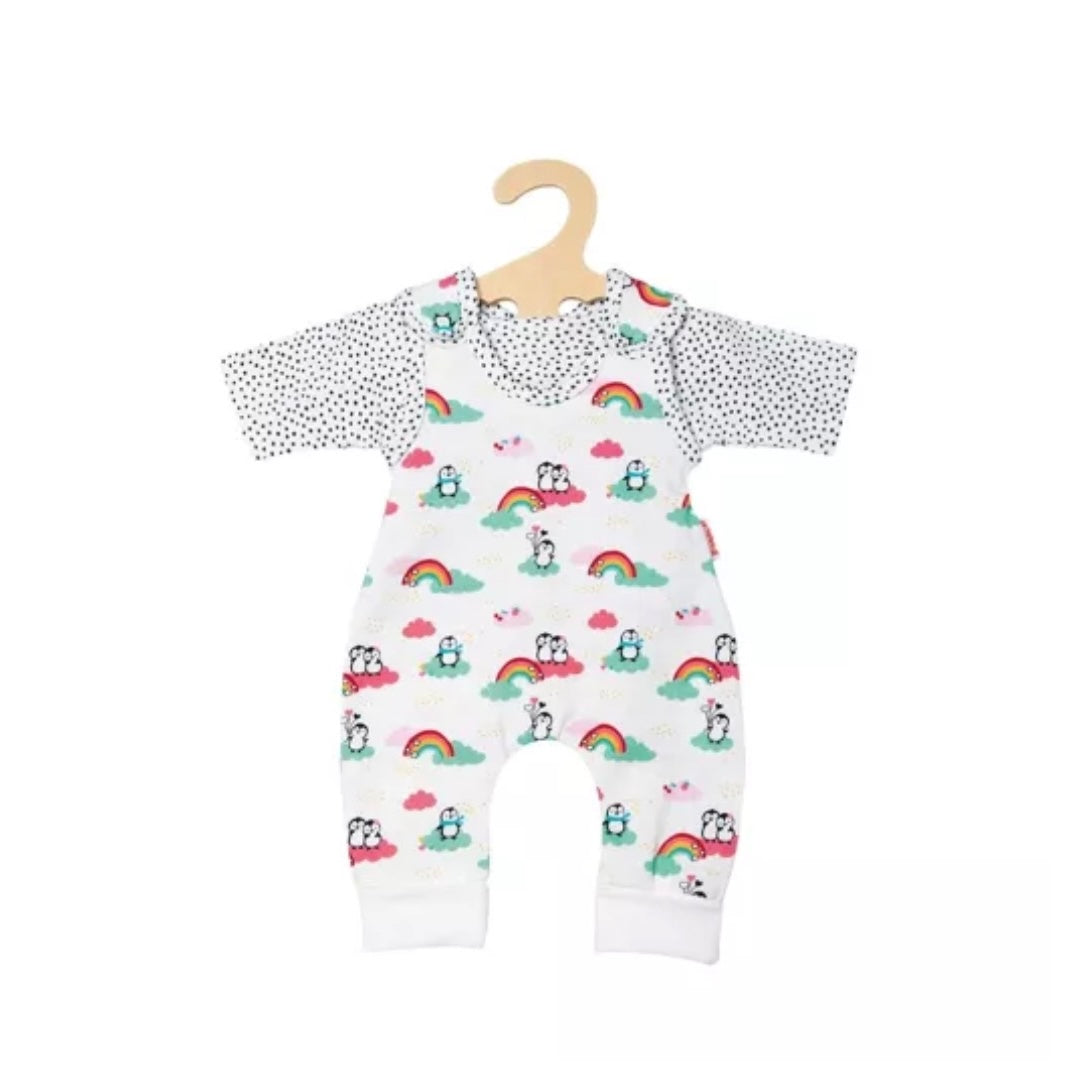 La barboteuse avec t-shirt de la série "Penguin Pünktchen" de Heless est un magnifique basique non sexiste pour des heures agréables à câliner avec la poupée. L'ensemble 2 pièces en jersey doux de haute qualité épouse parfaitement le corps de la poupée et est confortable à porter. Le t-shirt à pois noir et blanc offre un grand contraste avec l'imprimé pastel intégral de la barboteuse, qui montre "Penguin Pünktchen" avec ses amis entre les arcs-en-ciel et les nuages. Grâce à la matière douce et aux fermetures velcro sur la barboteuse et le tee-shirt, la tenue est un jeu d'enfant à mettre et à enlever.