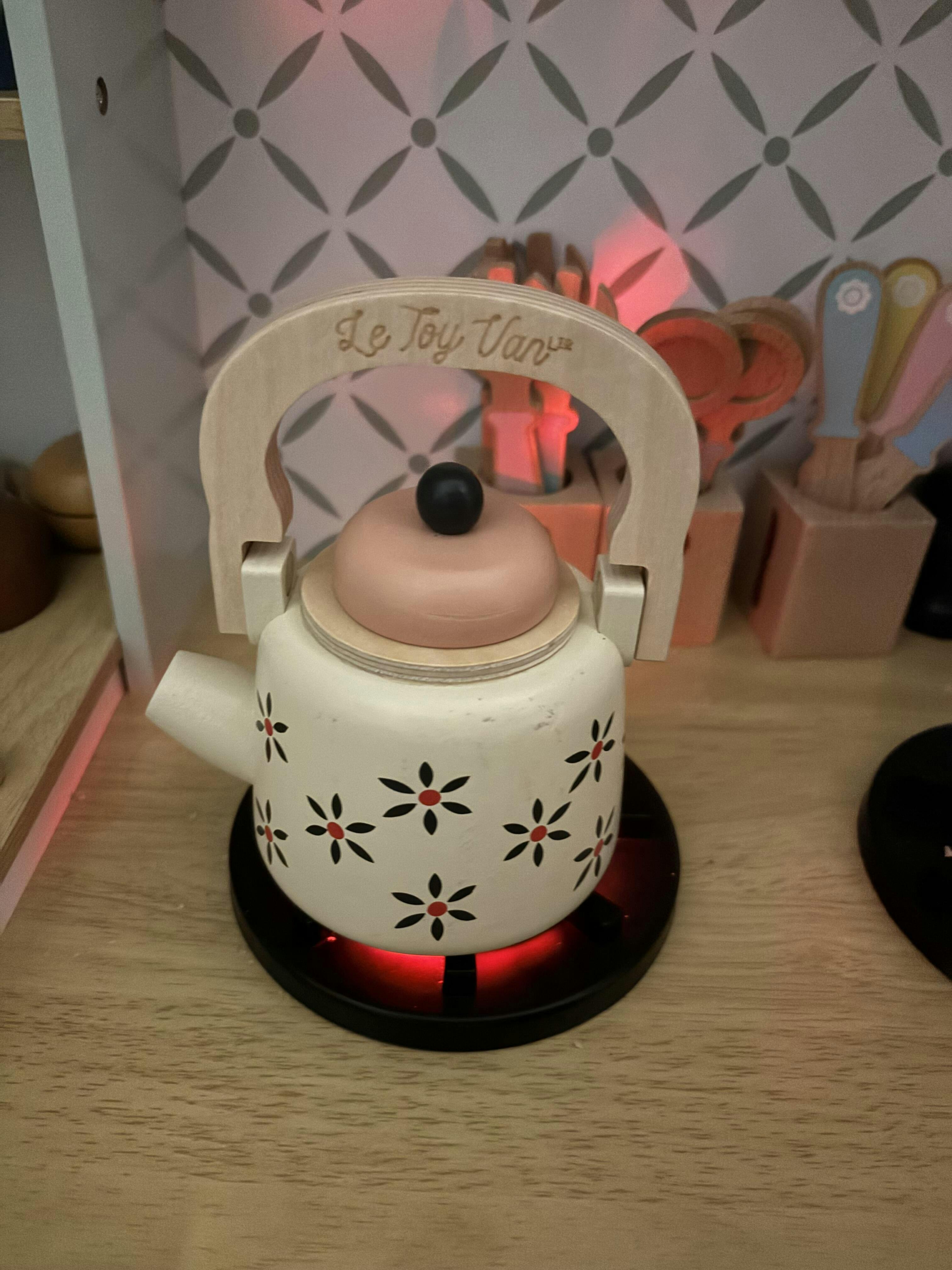Cette bouilloire en bois est l'accessoire de jeu parfait.