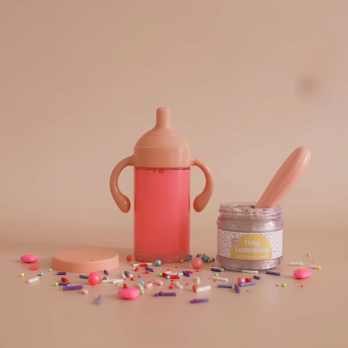 La box anniversaire est parfaite pour nourrir les poupées ou les Lucky Doggy de votre mini et éveiller l'imagination. Frottez le couvercle pour découvrir l'odeur alléchante, remplissez la cuillère en la trempant dans le petit pot et donnez à manger à votre poupée comme par magie la cuillère sera vide et votre poupée sera régaler . Donnez lui un succulent biberon de lait fraise et comme par magie il se videra Répétez à l'infini pour un jeu amusant et sans fin. Profitez d'un moment gourmand avec votre poupée!