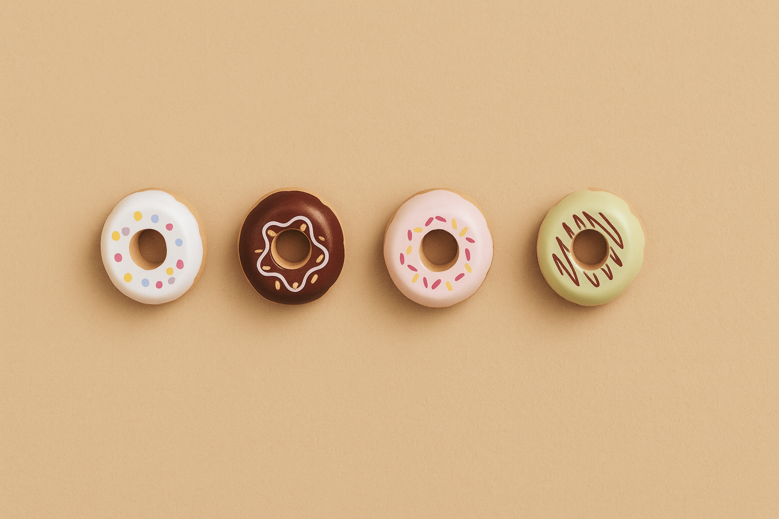 Ce joli set en bois FSC™ comprend 4 mini donuts, chacun décoré de couleurs différentes pour représenter de délicieux parfums.