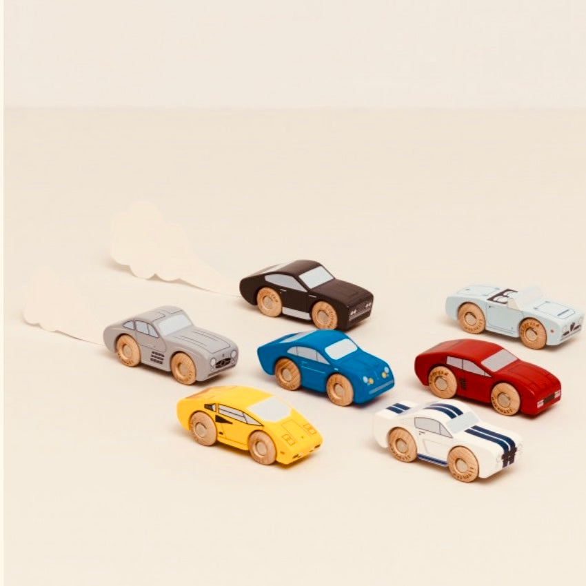 Cet ensemble comprend 7 voitures de course classiques en boissoigneusement fabriquées et certifiées FSC™, qui ne manqueront pas d'enflammer l'imagination. Chaque voiture a été conçue de manière réfléchie, avec des roues en bois robustes compatibles avec les rails de train. Les voitures présentent des illustrations très détaillées, apportant une touche réaliste à l'expérience de la course.