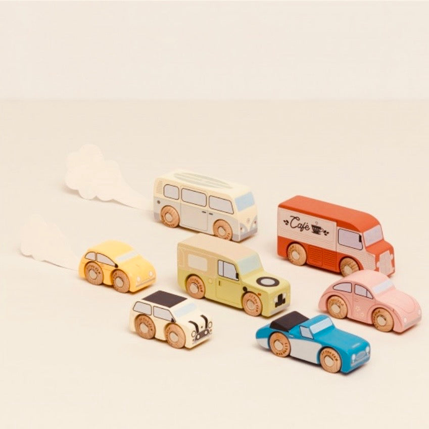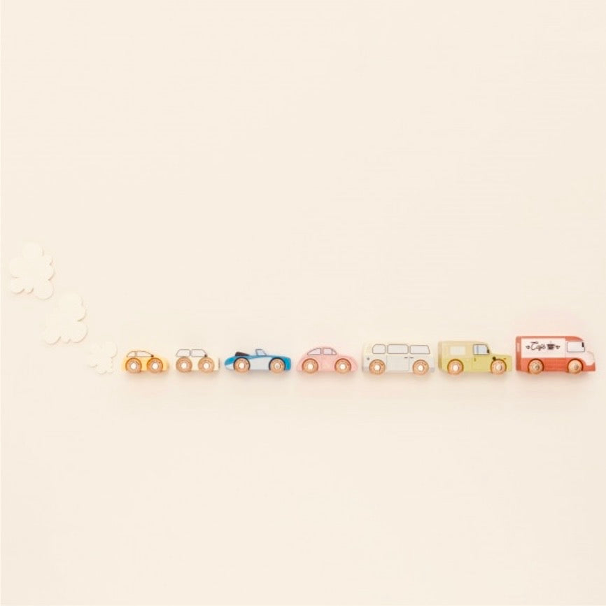Une collection de 7 voitures-jouets vintage en bois certifié FSC™, conçues pour captiver les enfants comme les adultes. Fabriqués avec une attention particulière aux détails, ces véhicules miniatures dégagent un charme intemporel et rappellent l'essence de nombreuses voitures emblématiques.