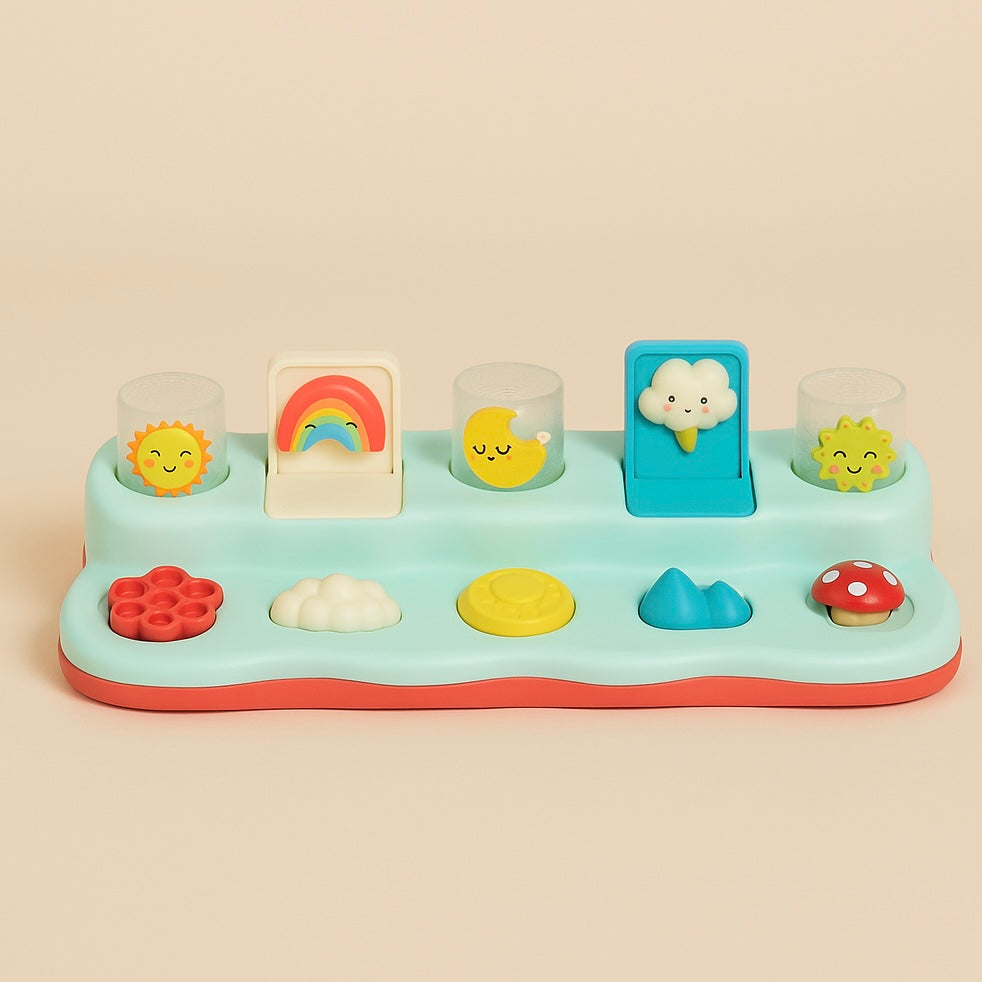 Le jeu d’éveil "Pop up météo" est conçu pour stimuler la motricité fine et la coordination de votre bébé. Chaque élément pop-up invite à l’exploration tactile et visuelle, favorisant le développement cognitif et sensoriel. Adapté aux premiers mois, ce jeu accompagne l’éveil de manière ludique et éducative.