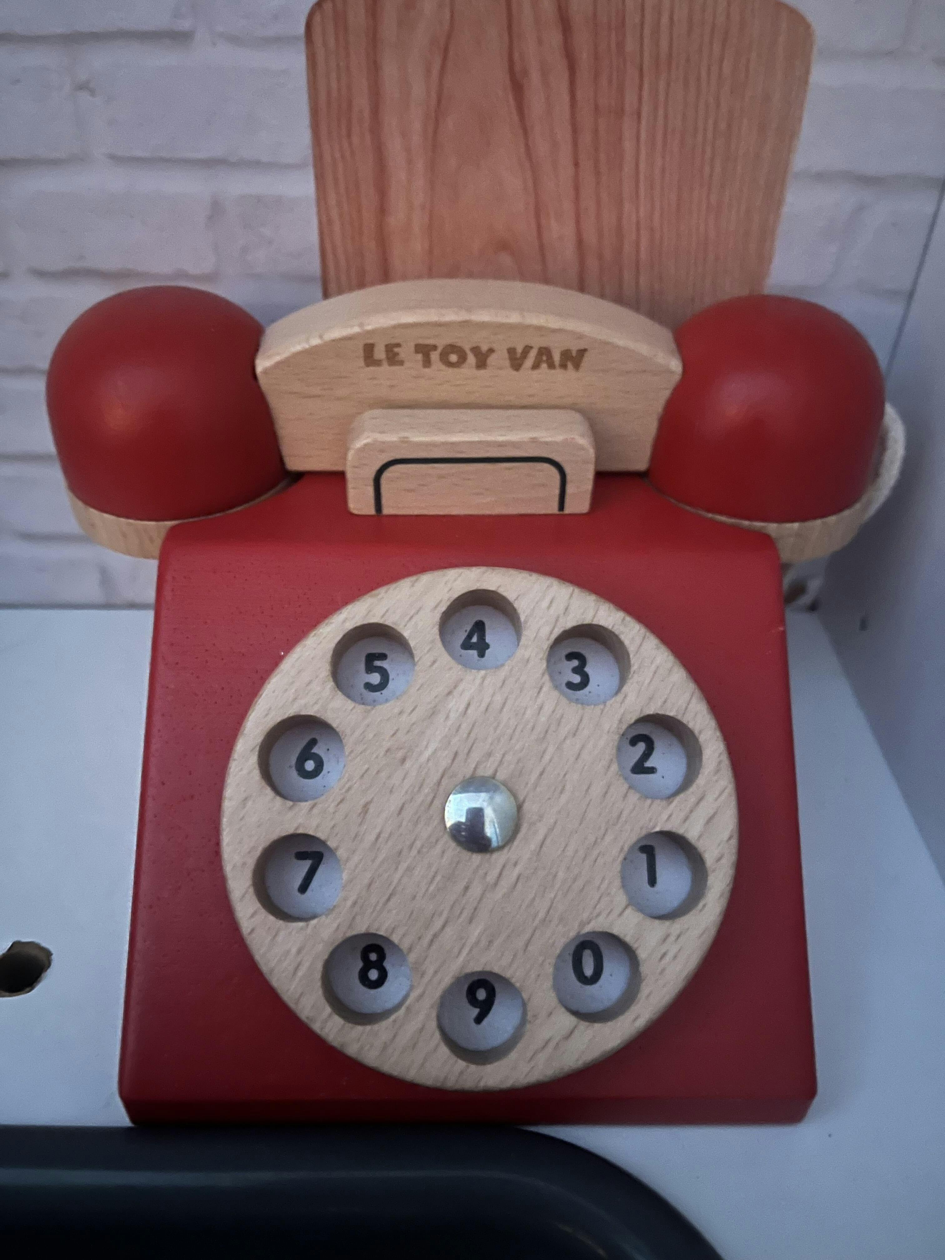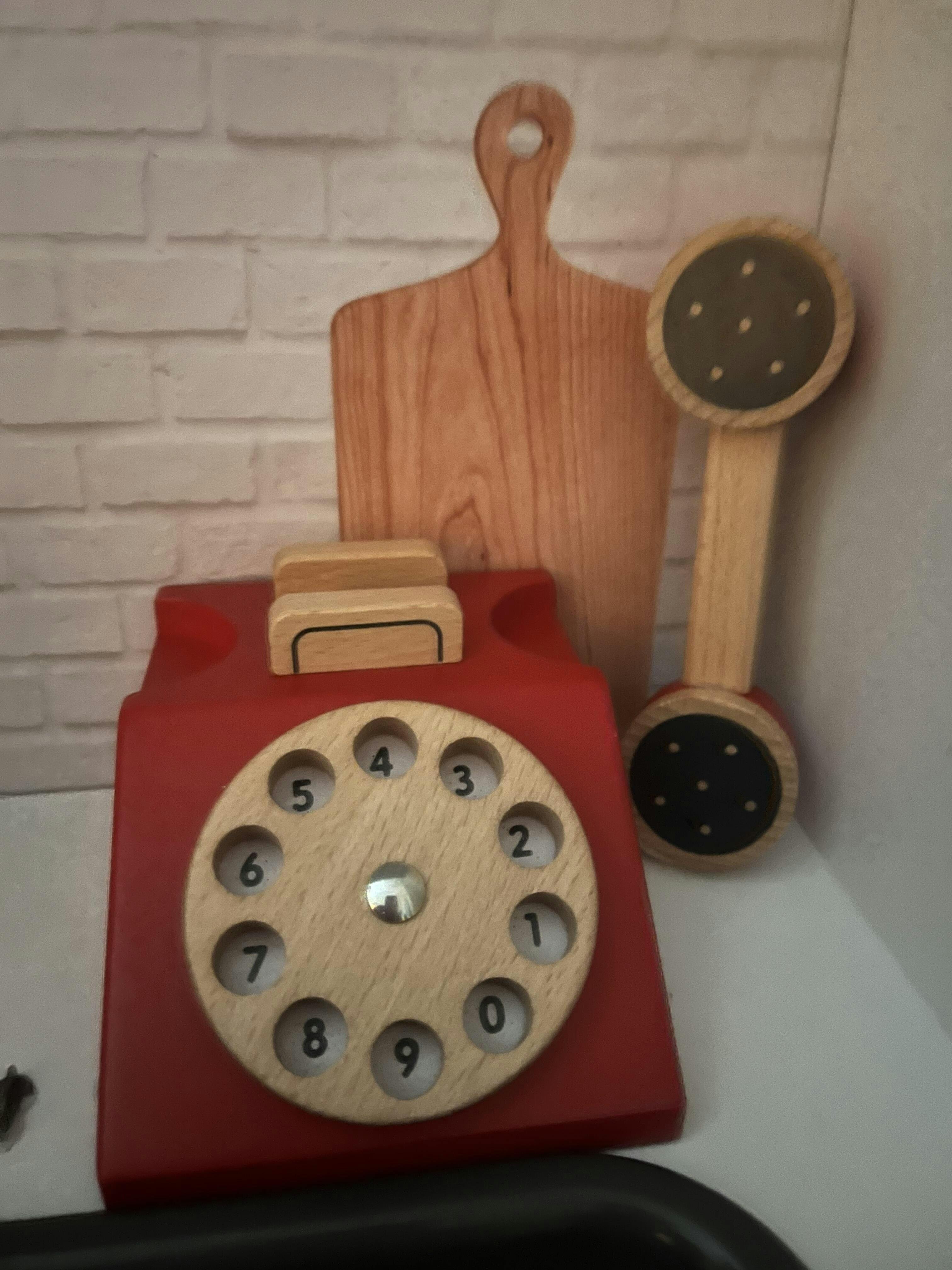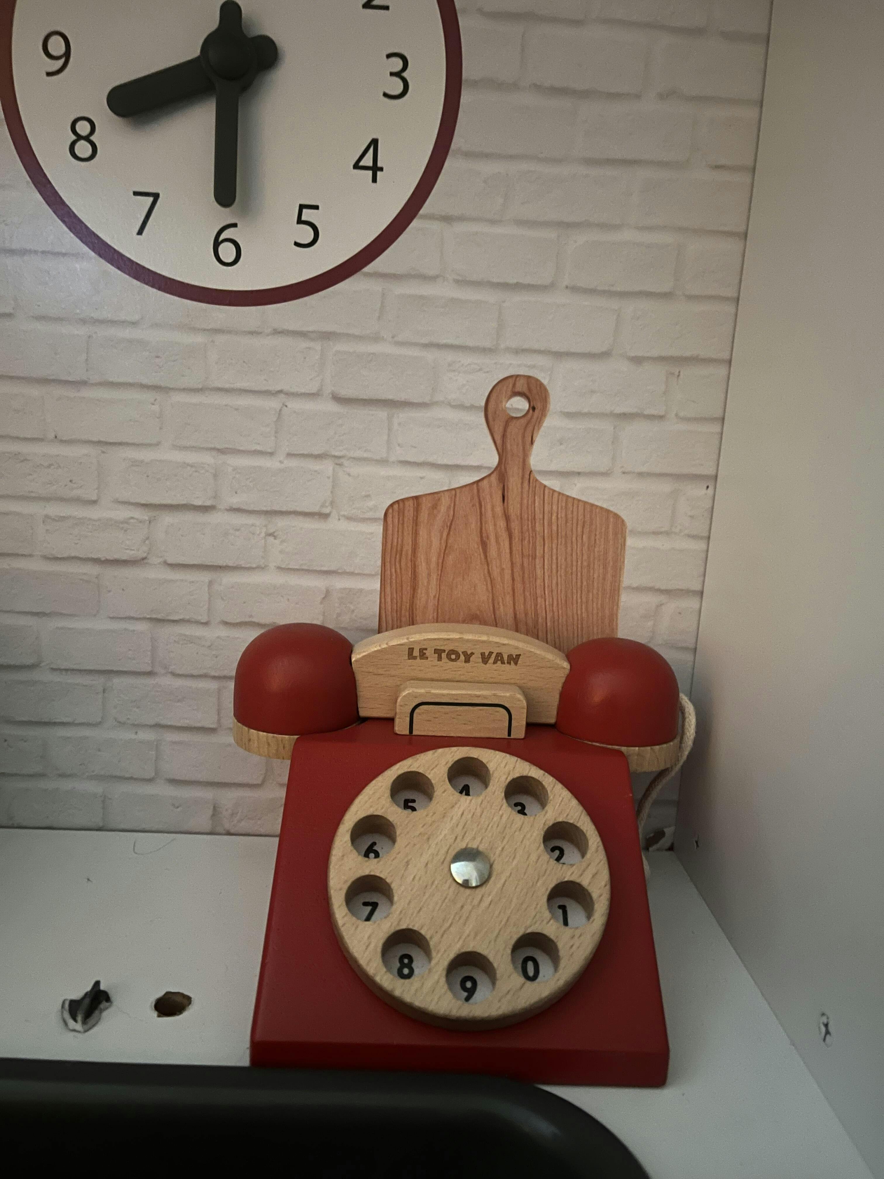Dring, dring ! Ce téléphone rétro en bois FSC™ allie design classique et charme du vintage. Il est doté d’un cadran rotatif et de chiffres écrits à l’ancienne, permettant aux enfants de découvrir les chiffres tout en jouant.